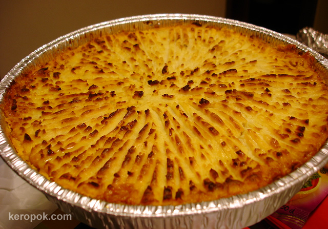 Singapore beer, Tiger Beer is used. haha… The mash potatoes on top is also made from scratch. Russet potatoes, boiled, mashed and mixed with butter and a tiny amount of salt. The filling is made from Weight Watchers mince (haha!!) and mix veg. Maybe the next time, we shall use meat chunks and leek. Maybe it will taste even better. šŸ™‚