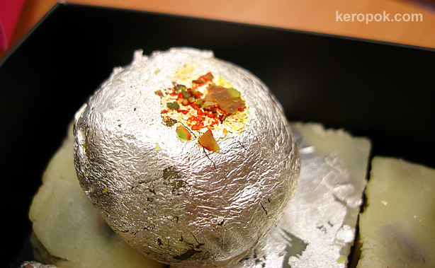 • pls be more descriptive can a not ? like the taste, flavor, what is it made of, tt’d b a killer to the readers, btw, the pix do tells about 999 words hehe ๐Ÿ™‚ hey, what’s tt silver sheet made of ? is it edible ?