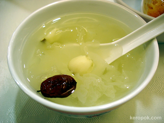 This is the dessert. White fungus, ginko nuts and red date. (note its singular. haha…)