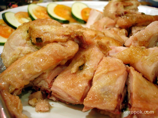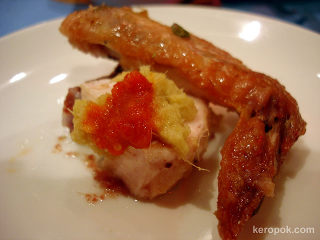 Baked Rock Salt Chicken. It comes with minced ginger and chilli sauce.