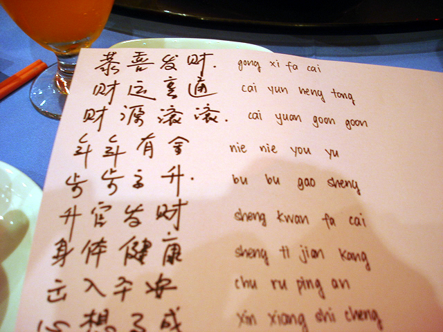 While ‘lou-ing’, you are suppose to be saying some auspicious chinese proverbs, and here are some of them. Yes, they had a list for us at our table. š