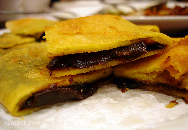 This is red bean pancake. We ordered this for dessert. Just look at the red bean oozing out!