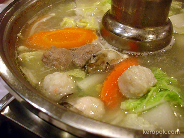 keropok, they don;t serve the hotpot in 2 style soup one meh ? like one spicy n one regular ? btw, those cockles r killing me :PPPPPP