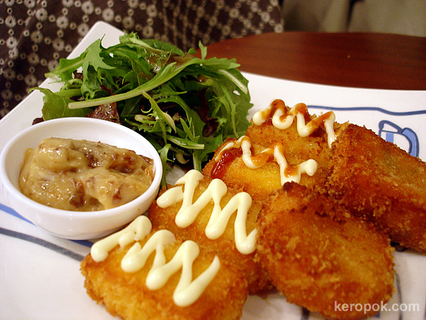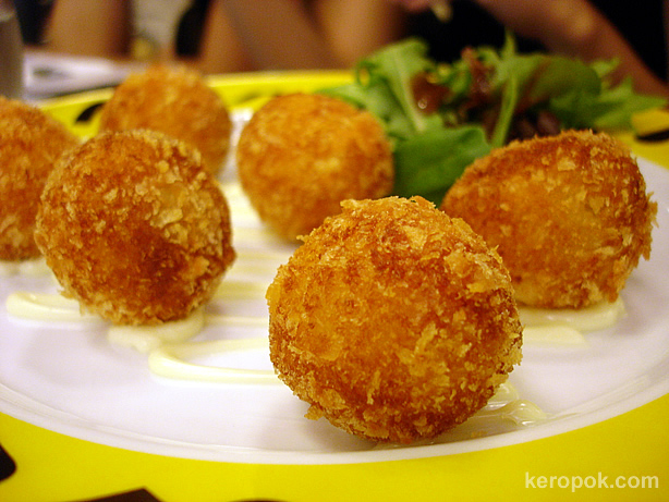A lot of asian-fusion restaurants here are also serving the chinese ingredients (like tofu) covered in cheese casserole thing.>>I’ve never had lycee stuffed taro balls. Looks delicious.