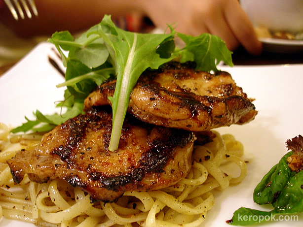 Oven Baked Marinated Chicken with garlic pasta.