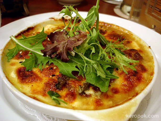 This is Beef Mozza-Tofu. This is what I ate. Quite yummy. Beef and Silken Tofu in sukiyaki sauce at the bottom, covered with Mozzarella Cheese.