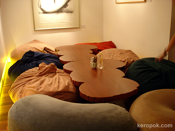 Oh. i love tehir lychee yam!! Absolutely rawk!!>>The Lava choc cake is good too.. ohh.. i really gotta go for lunch now.>>*Ding* *Ding* Got bean bag somemore. must go to cicular rd branch next time.