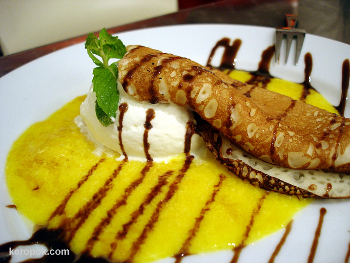 This is I think their most favourite dessert. Pancakes with mango puree. Only a few person had it as they ran out of mangoes. haha..