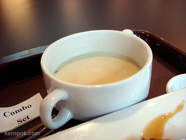 This is the combo meal that I had. Fish and Chicken Chop. Comes with mushroom soup and a drink from the self service machine. I had peach tea. This combination cost less than $5.