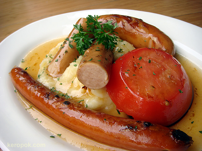 2 of us had this. Bangers and Mash. Chicken, Bratwurst and Bedder & Cheese sausages. Yum…