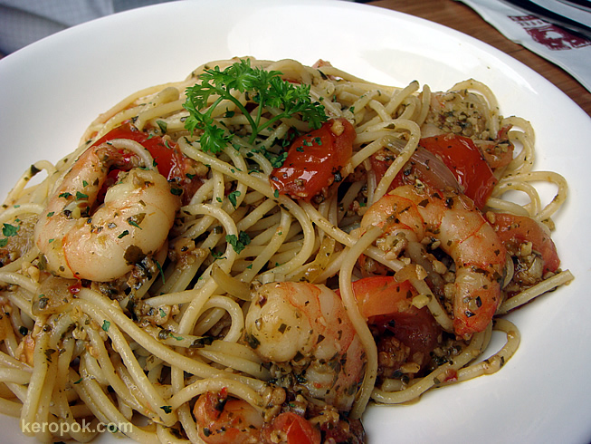 Ahh, the famous garlic prawn pasta from Coffee Club – looks soooo good!!! So too the sausages (albeit a bit oily – is that oil or watery gravy?)