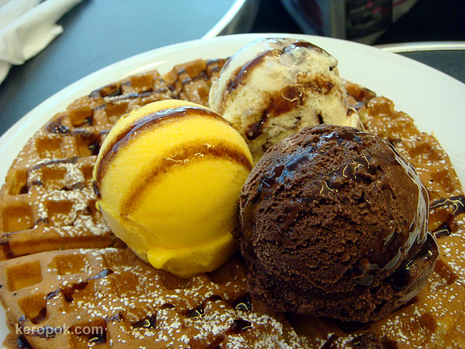 For the rest of who do not like, we shared a waffle with 3 scoops of ice cream.