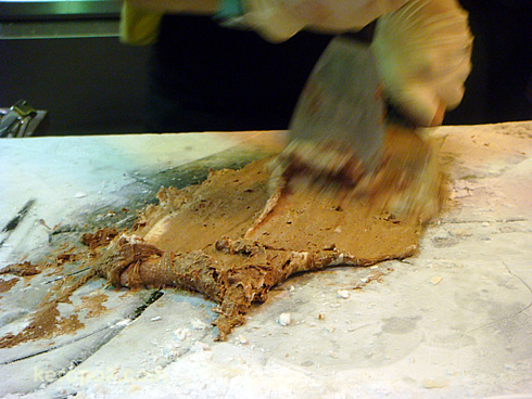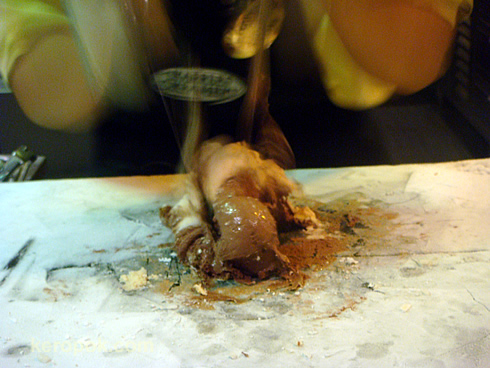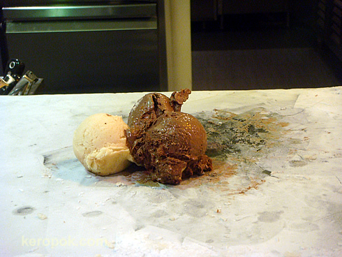 The marble slab looks quite heavily used with the black stains … Does that add flavour to the ice-cream… hahahaha !