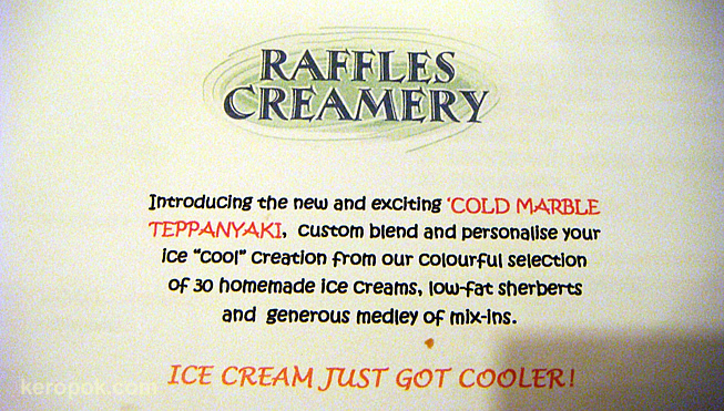 If you have been following the last few day’s photos, right after dinner, we had ice cream. Raffles Creamery is just outside the door of Seah St Deli, in the courtyard.