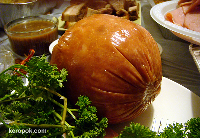 HAPPY NEW YEAR! Waaah, you are very lucky to have so many relatives in Singapore! š Hey, is that roast pork I spy behind the ball of ham? Yummy…