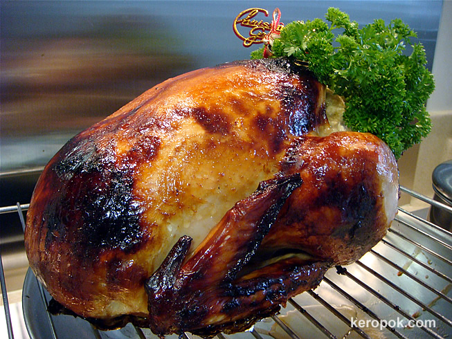Aunt roasted a turkey, this shot is taken in her kitchen in Toh Yi before being transported to Sembawang. š Delicious looking eh? Home baked turkey taste the best.