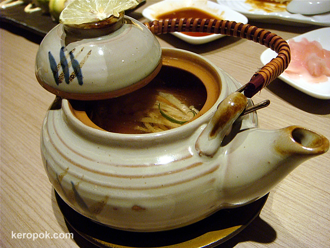 With the Hokkaido promotion now on, we ordered the giant chawanmushi. It feeds 3 or 4 persons. And look, it’s not fake crab sticks, it’s the whole pieces of real crab meat. yummy!