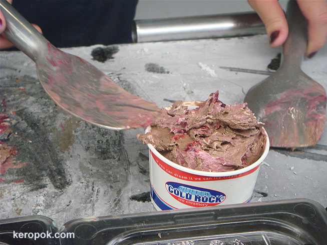 Finally got to taste the ice cream from Cold Rock few days ago. It’s also one of those that you pick your ice cream, choose some toppings and they mix them all up on a cold surface.
