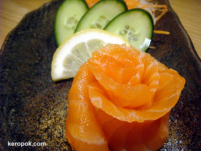 So, she pestered her mum for another plate of sashimi, I think only at this place, do you find a flower shape salmon sashimi! 🙂