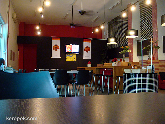 It was drizzling too, so ‘ok lah, let’s go in’ mood kicked in. It’s a very cosy place. Soft music, soft lighting, it’s air conditioned and it smells of waffles!