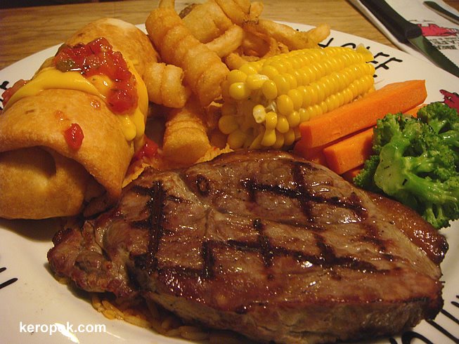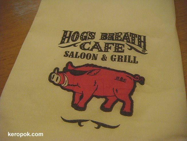 Today, a colleague asked us to meet him at Holland Village for lunch. After a few sms being ding-dong here and there, we ended up at Hogs Breath Cafe. We had a few choices but ended up here because there was a 1 for 1 UOB card offer! LOL..