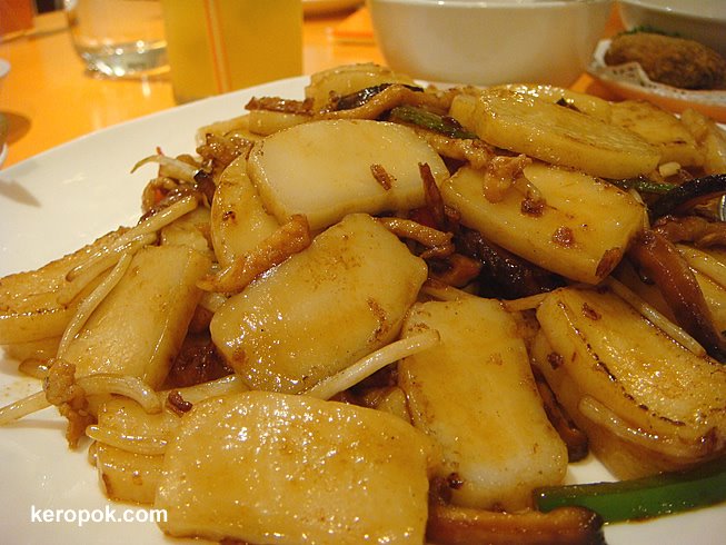 This is aunt’s lunch. She ordered the ‘pek kueh’ or Rice Cake dish. ($10) We realise she always orders this when it’s in the menu. It’s her dialect dish! šŸ™‚