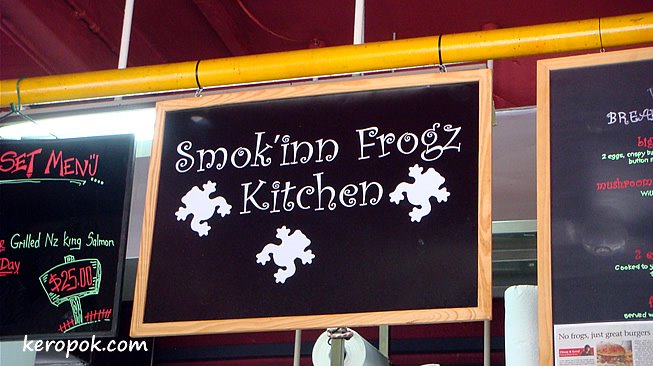 Southernoise introduced us to this place that he frequently visits. Tucked in an obscure place, it serves delicious burgers! It’s called Smok’inn Frogz Kitchen.