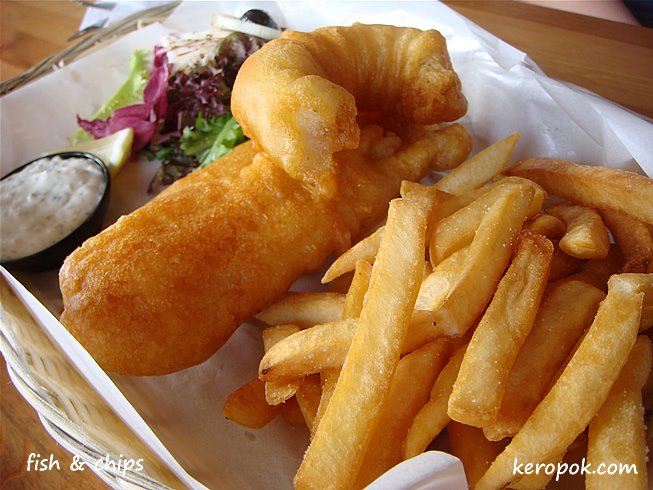 It’s beer battered fish. It stays crispy and the batters taste a bit like those delicious pisang goreng batter too.