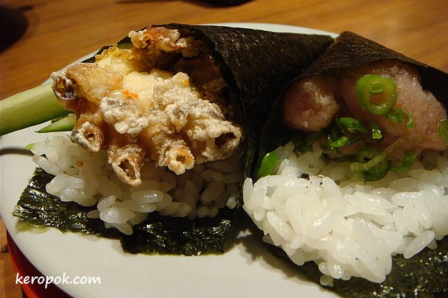 The family met up with them and out of the 5 Jap places in Vivo City, we settled for Sushi Tei. We had a few things, but these are the more interesting looking ones.