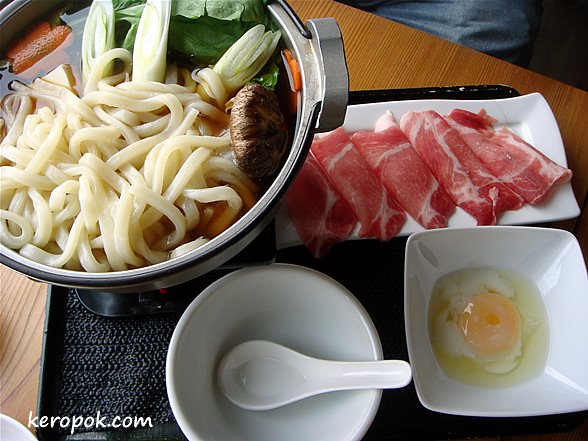 mmh, what a feast! did the kurobuta ramen taste porky though? i scared of that gamey taste. or was it like bacon? yums!>>the hotpot and sukiyaki look so colourful! the sukiyaki egg is supposed to be raw but looks like it’s been dribbled with hot soup…partially cooked. is it for people who dun dare to dip their stuff into totally raw egg?