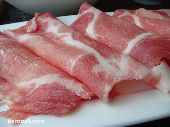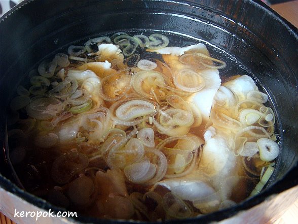 Another colleague, ‘wire’ had a hot pot too. Different from the one above, this soup is more sweetish. I think its sukiyaki. We were quite intrigue by the egg. The whole egg is raw but only a tiny part of the white that is cooked. Hmm….