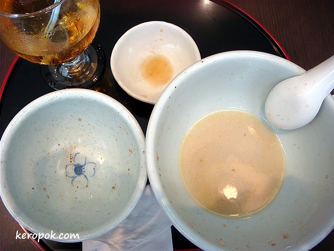 If you are paying with a DBS/POSB card, and you order the set meal, you get a free drink too. I had the oolong tea. So that means, we pay the same, I get more stuff! hehe..