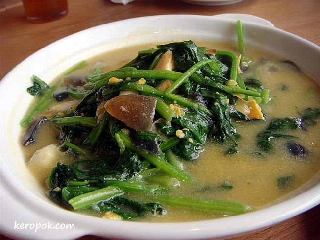 The poach spinach with century eggs and salted eggs. Quite yummy. Ordered medium size too.