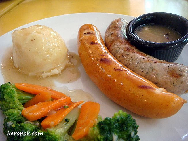 ‘Old Cat’ decided he should have sausages. Think he has sausage cravings because he has been eating sausages! He had the e.BB Mixed Sausages $8.00 (chicken cheese and pork sausages)