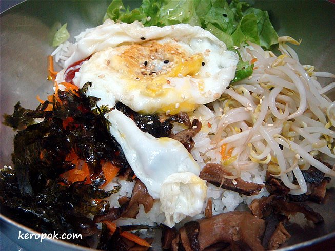 It does not come in hot stone plates like in other fanciful restaurants. It comes in a steel bowl, just like how they eat at home in Korean dramas. (You know in the dramas they will always mix their rice in steel bowls and always say how delicious it is. LOL)
