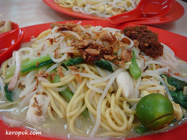 • I think the pale noodle thing is called prawn mee or something. You find it at every HDB kopitiam in Singapore. Can be quite tasty lah.