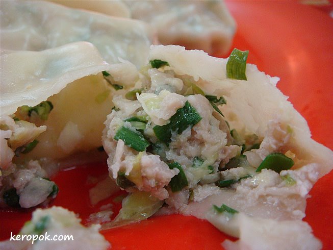I am also not a dumpling person. I don’t like to eat the skin. Breaking it up so that you can see what’s inside. Think I have mentioned it before, you can order the uncooked dumpling home if you are having a dumpling party 😉
