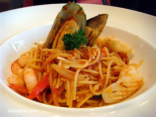 aiyoooo…. look at the seafood pasta…>>pls la… you can hold to shoot photo before putting them in your mouth?>>keng!!!….>>so tempting….