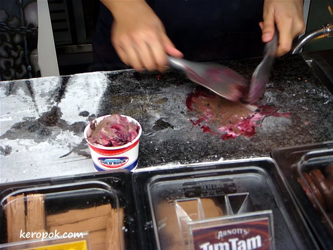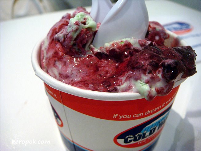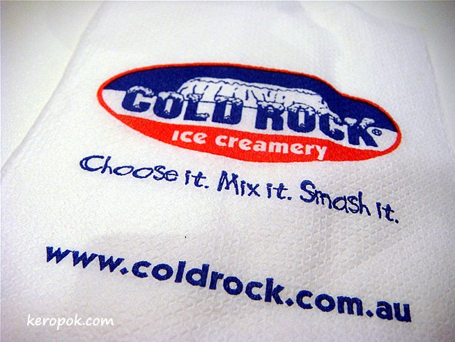 It seems Sushi Tei has a long queue during peak hour, and so we were glad. (LOL.. are we mad?) Now comes the dilemma, it’s so hot outside and we know the wait’s going to be 30 minutes, where can we find a place that’s nearby and has air-con? Cold Rock.