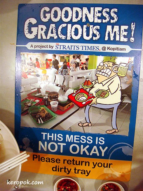 We ate at Basement 2 of Terminal 3, at the Kopitiam food court. There was posters like this stuck on the tables.
