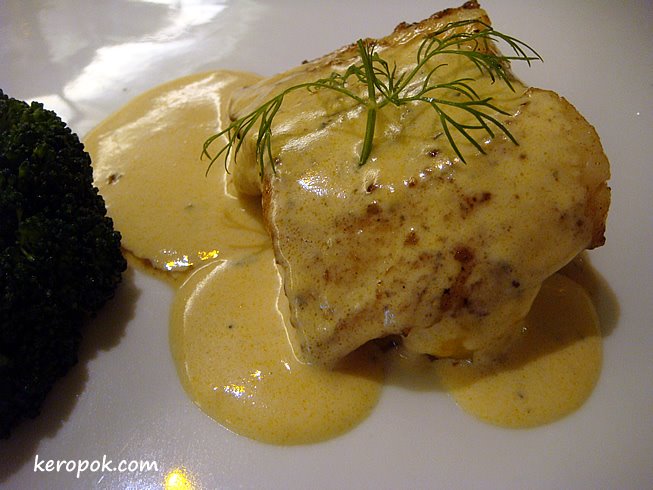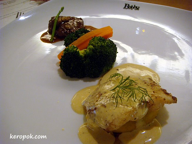 Fillet of Beef with Signature Mushroom Sauce & Grilled Dory Fillet with Sorrel Cream Sauce.