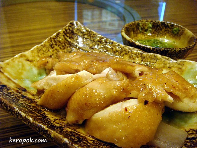 The soy sauce chicken. Usually you have this cold right? This one comes warm.