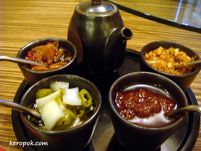Also, condiments on the table that are quite unique and tasty.