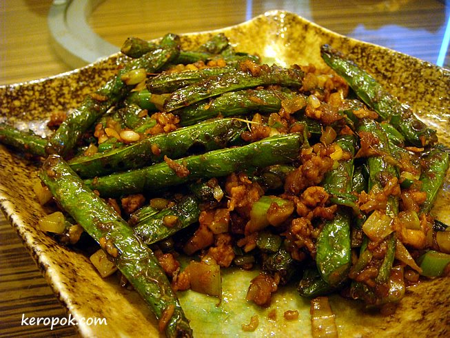 Deep fried long beans with mince.